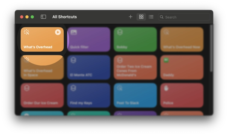 Once installed, run the Shortcut. You can either use Siri, by asking "Hey Siri, What's Overhead?", or you can run the Shortcut manually by tapping on it in the Shortcuts app.